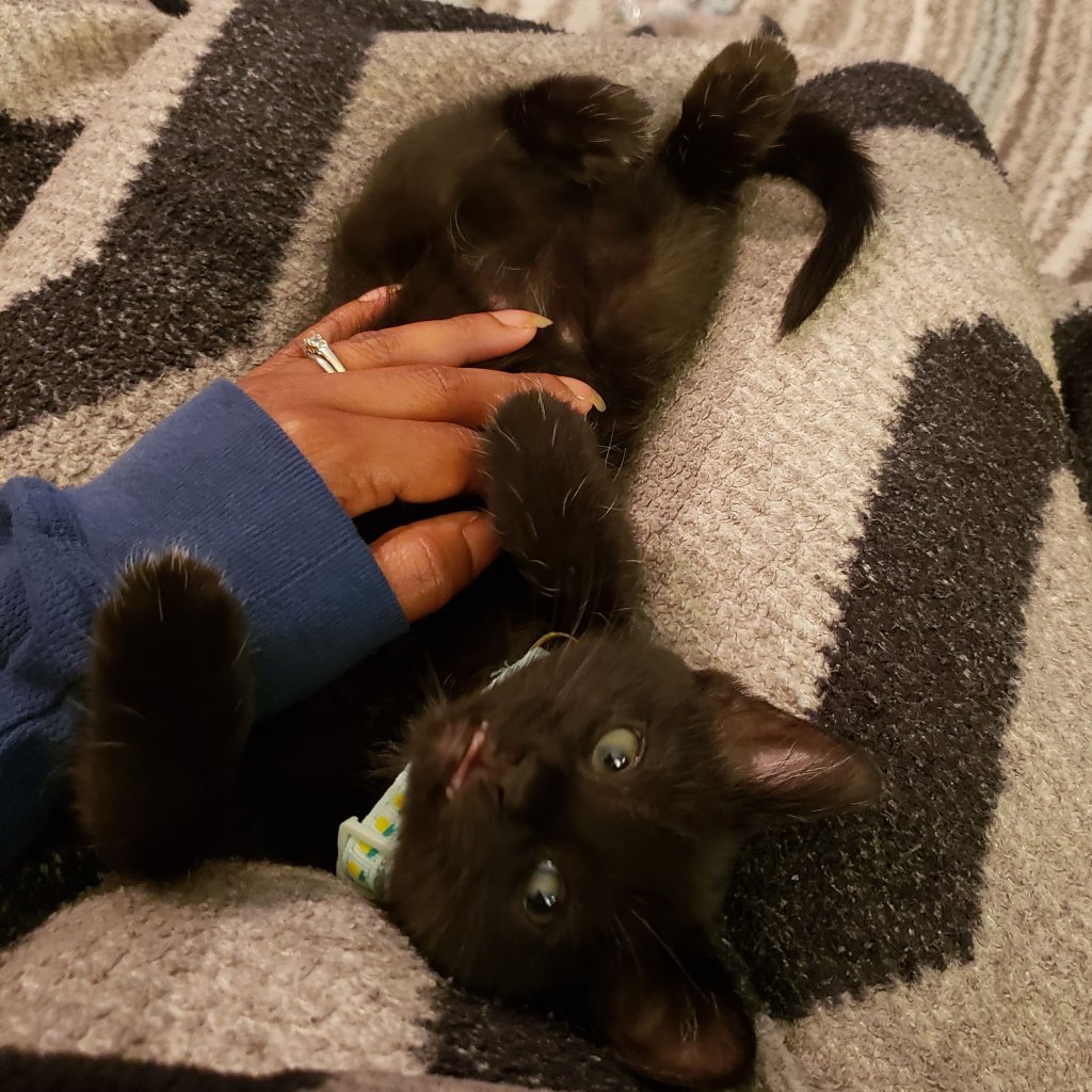 I absolutely did not expect the guilt and fear of that failure to crash over and try to drown me in this new attempt. In private, I have breathed, cried, and wrung my hands when the urge to give Jack back is strongest. When he curls into my lap after his favorite little playmate has gone to bed and turns into a little void loaf, purring as loudly as ever he can, I cup my hand around his tiny head or the curve of his back and murmur to him. I tell Jack how imperfect I am, how I have failed before, but I also promise to do my best for him. I promise to keep him fed, sheltered, healthy, and to love him as much as I can. I will be imperfect; I will fail. But I am going to do my best to love him, teach him “soft paws”, enrich him, and help him feel forever safe.